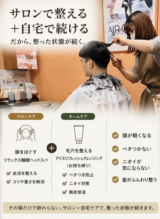 ・ホームケア剤のアイスリフレッシュクレンジングクリーム(頭皮の皮脂汚れを除去して頭皮を保湿)がセットになって特別価格になってます。